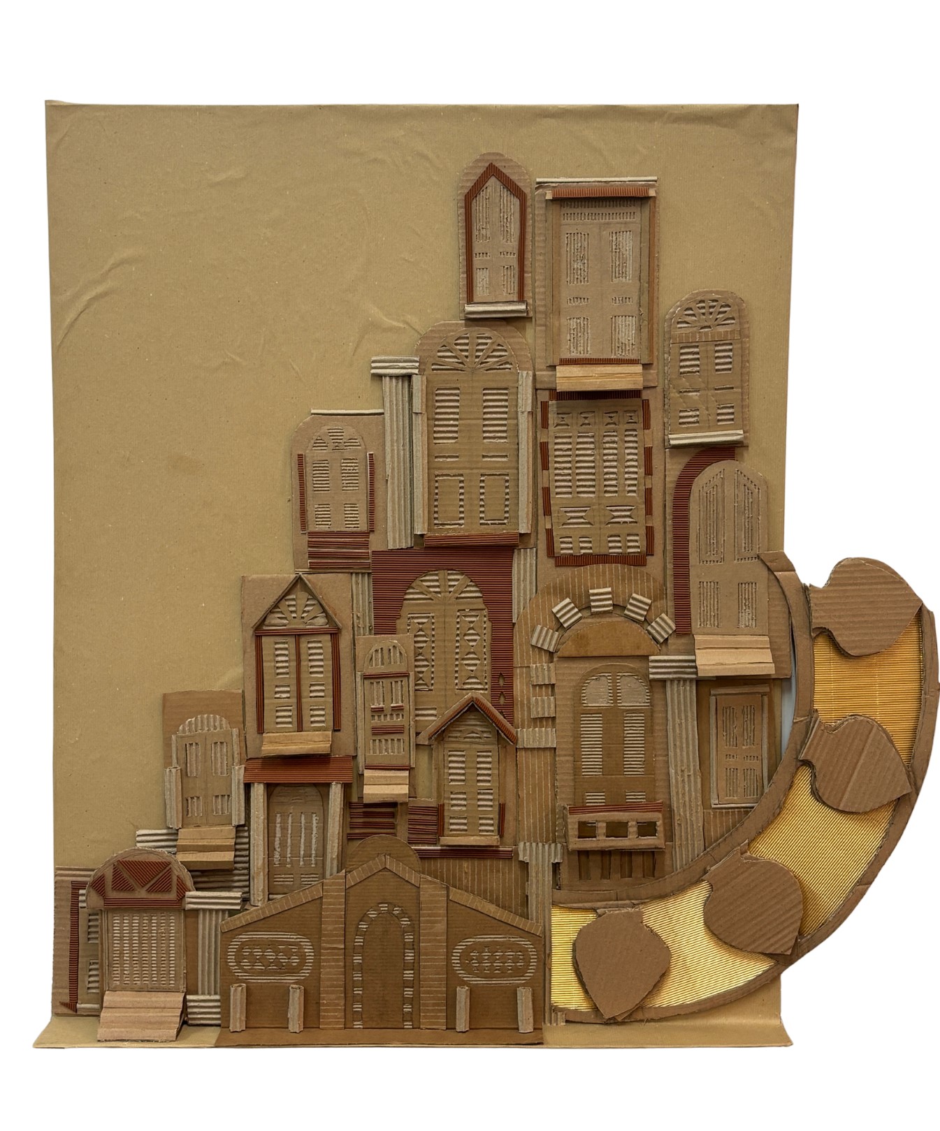 Έτσι αποφάσισα να φωτογραφίσω παραδοσιακές πόρτες του ιστορικού κέντρου εντός των τειχών και να τις κατασκευάσω σε ανάγλυφη μορφή με ανακυκλώσιμα υλικά. Ήθελα να δείξω ότι πίσω από κάθε κλειστή επιφάνεια μπορεί να υπάρχει κάτι ζωντανό. Μνήμες, αφηγήσεις και εικόνες που περιμένουν να ανακαλυφθούν και ίσως να συνομιλήσουν μαζί μας.