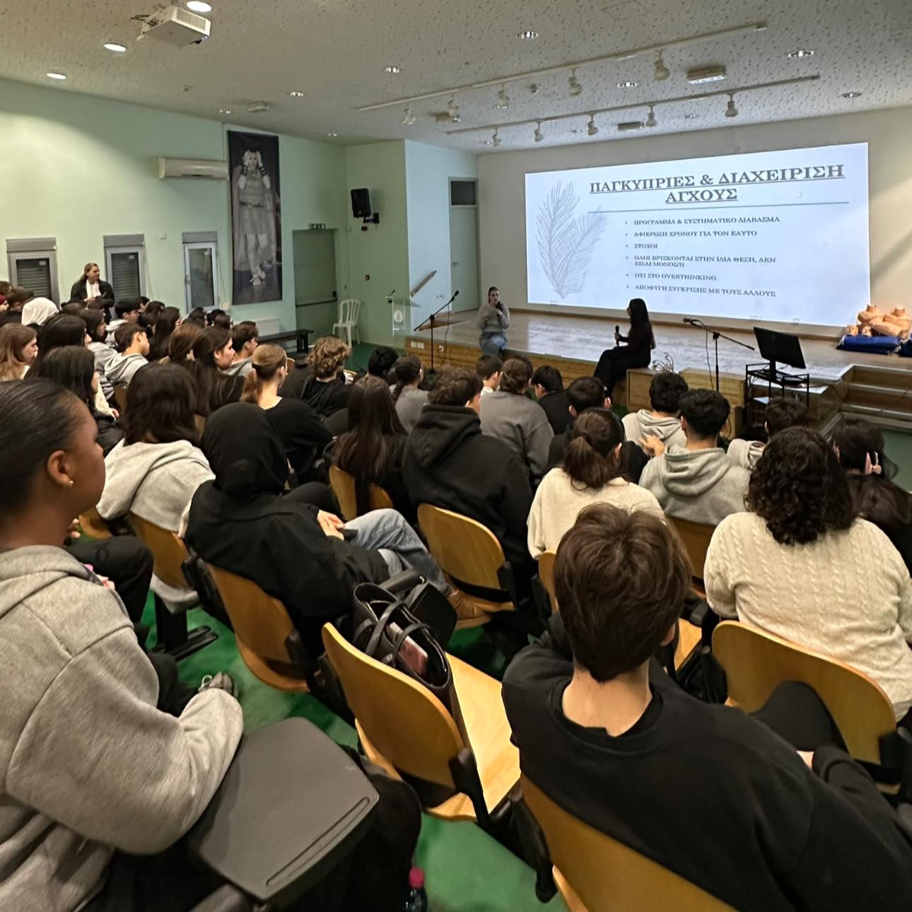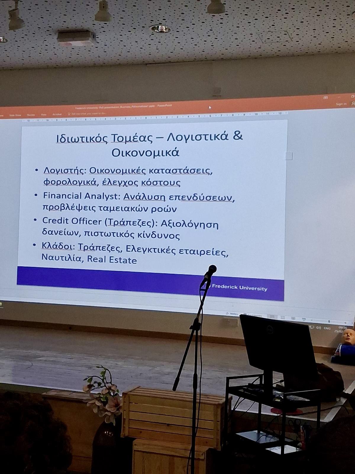 Στο πλαίσιο του Επαγγελματικού Προσανατολισμού, την Τετάρτη, 25 Φεβρουαρίου, πραγματοποιήθηκε σειρά διαλέξεων στο σχολείο μας. Οι ακαδημαϊκοί του Πανεπιστημίου Φρέντερικ Γιώργος Παπαγιούβανης, Λέκτορας στο Τμήμα Φαρμακευτικής και η Ευανθία Ασημακοπούλου, Λέκτορας στο Τμήμα Νοσηλευτικής, μίλησαν για τις σπουδές και τα επαγγελματικά δεδομένα για τη φαρμακευτική και τη νοσηλευτική. Τις διαλέξεις παρακολούθησαν μαθητές/τριες της Β΄και Γ΄ Λυκείου. Την ίδια μέρα οι απόφοιτες του σχολείου μας (2025) Μικαέλλα Χριστοδούλου και Κατερίνα Έλληνα μίλησαν στους τελειόφοιτους για τη μετάβαση στο Πανεπιστήμιο Κύπρου, τη μελέτη, την έρευνα, την οργάνωση και τις απαιτήσεις της πανεπιστημιακής ζωής. Η απόφοιτη Μελίνα Αλ Ντουέηλι Αλ Ντουέηλι μοιράστηκε την εμπειρία των σπουδών της στο Λονδίνο. Ακόμα, ο απόφοιτος του σχολείου μας (1993) Δρ. Νίκος Κουσής, Καθηγητής Χρηματοοικονομικών στο Πανεπιστήμιο Φρέντερικ, μίλησε στους μαθητές/τριες για τη σύγχρονη οικονομική πραγματικότητα, τις σπουδές στα Χρηματοοικονομικά, τις επαγγελματικές προοπτικές, τις απαιτήσεις της αγοράς καθώς και τον ρόλο που διαδραματίζει σήμερα τεχνητή νοημοσύνη στον τομέα των επενδύσεων και των αγορών. Υπεύθυνη της δράσης ήταν η Σύμβουλος του Σχολείου Κρίστα Αγρότου και η ΒΔ.Α΄Μαρία Μηχανικού.