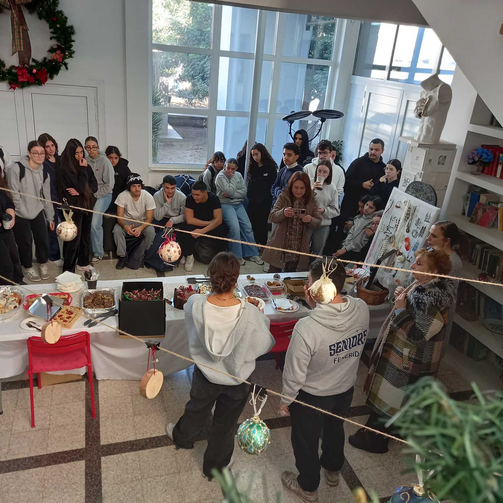 Διαγωνισμός Μάστερ Σεφ Ζαχαροπλαστικής διοργανώθηκε την περασμένη Τετάρτη, 17 Δεκ., στο σχολείο μας. Την κριτική επιτροπή αποτελούσαν η βραβευμένη Σιεφ Ντανιέλλα, ο Πρόεδρος του ΚΜΣ Σάββας Φενερίδης, η καθηγήτρια Αγγλικών Έφη Μεσαρίτου με επίτιμο μέλος τη Διευθύντρια του σχολείου. Την πρώτη θέση κατέλαβε η τούρτα της Κρυσταλλίας Ραΐσας Μουσκουντή (Γ51), τη 2η το μιλφέιγ της Μανταλίνας Αρναούτου (Γ41), ενώ την 3η θέση τα gingerbread cookies της Θέκλας Φενερίδου (Β31) και οι υπέροχες τρούφες της Παντέλιας Αβραάμ (Α42). Όλες οι νικήτριες του διαγωνισμού κέρδισαν γεύμα σε εστιατόριο με την Κριτική Επιτροπή.