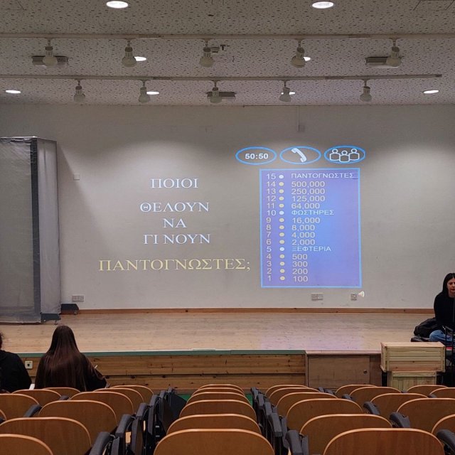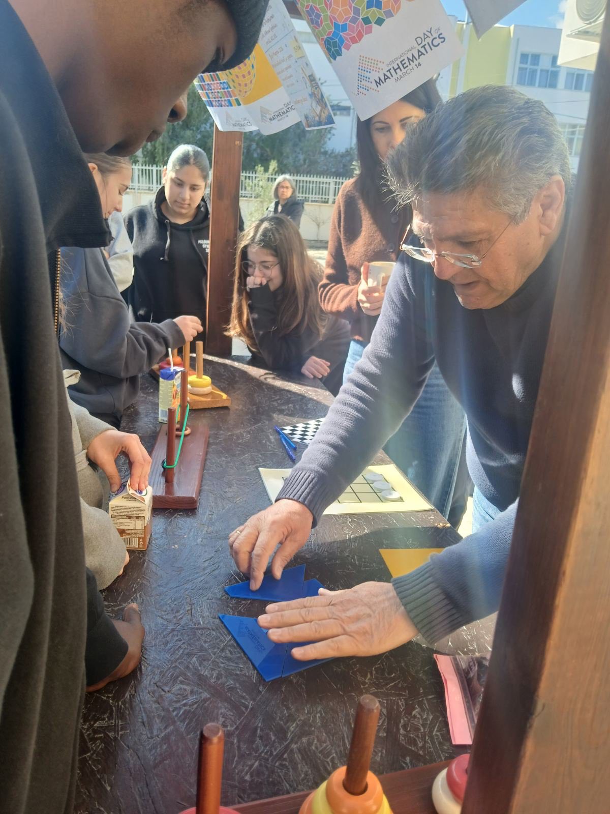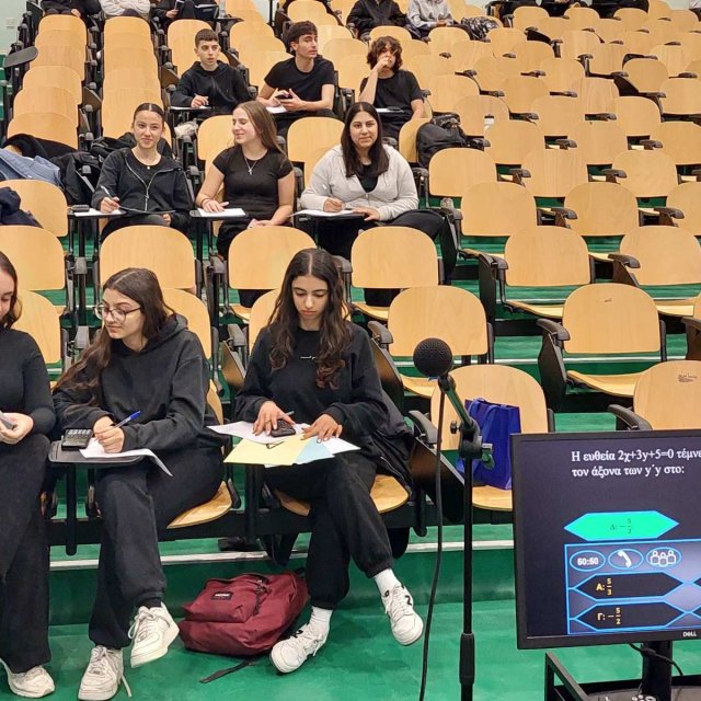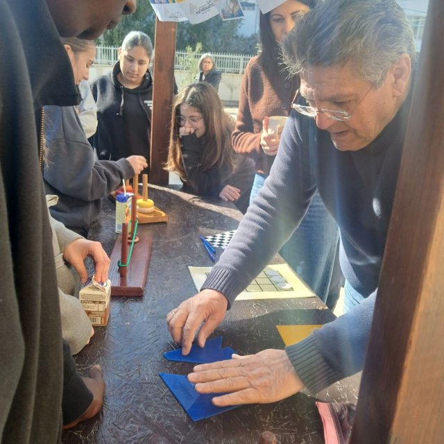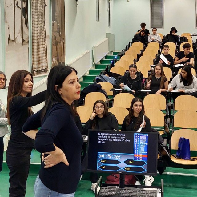 Οι δράσεις για τα Μαθηματικά και την ημέρα του «π» ολοκληρώθηκαν στο σχολείο μας την εβδομάδα που πέρασε. Την Πέμπτη, 12 Μαρτίου, μαθητές/τριες δοκιμάστηκαν στο παιχνίδι “Millionaire – Λύνοντας Μαθηματικές Ασκήσεις”. Νικήτρια αναδείχθηκε η Ομάδα 5 από το τμήμα Α21, που αποτελείται από τη Μαρία Γεωργίου, τη Μικαέλλα Παπαναστασίου, την Ολυμπιάδα Δημητρίου και τον Μάρκο Κωνσταντίνου. Στη δράση συμμετείχε και ο Επιθεωρητής Μαθηματικών του σχολείου μας, κ. Κυριάκος Κυριακού. Προηγήθηκαν τις προηγούμενες μέρες στην αυλή παιχνίδια λογικής, μαθηματικές προκλήσεις και ζωντανή συμμετοχή μαθητών και μαθητριών. Τον συντονισμό είχε ο Γιώργος Μυλωνάς, Β.Δ.