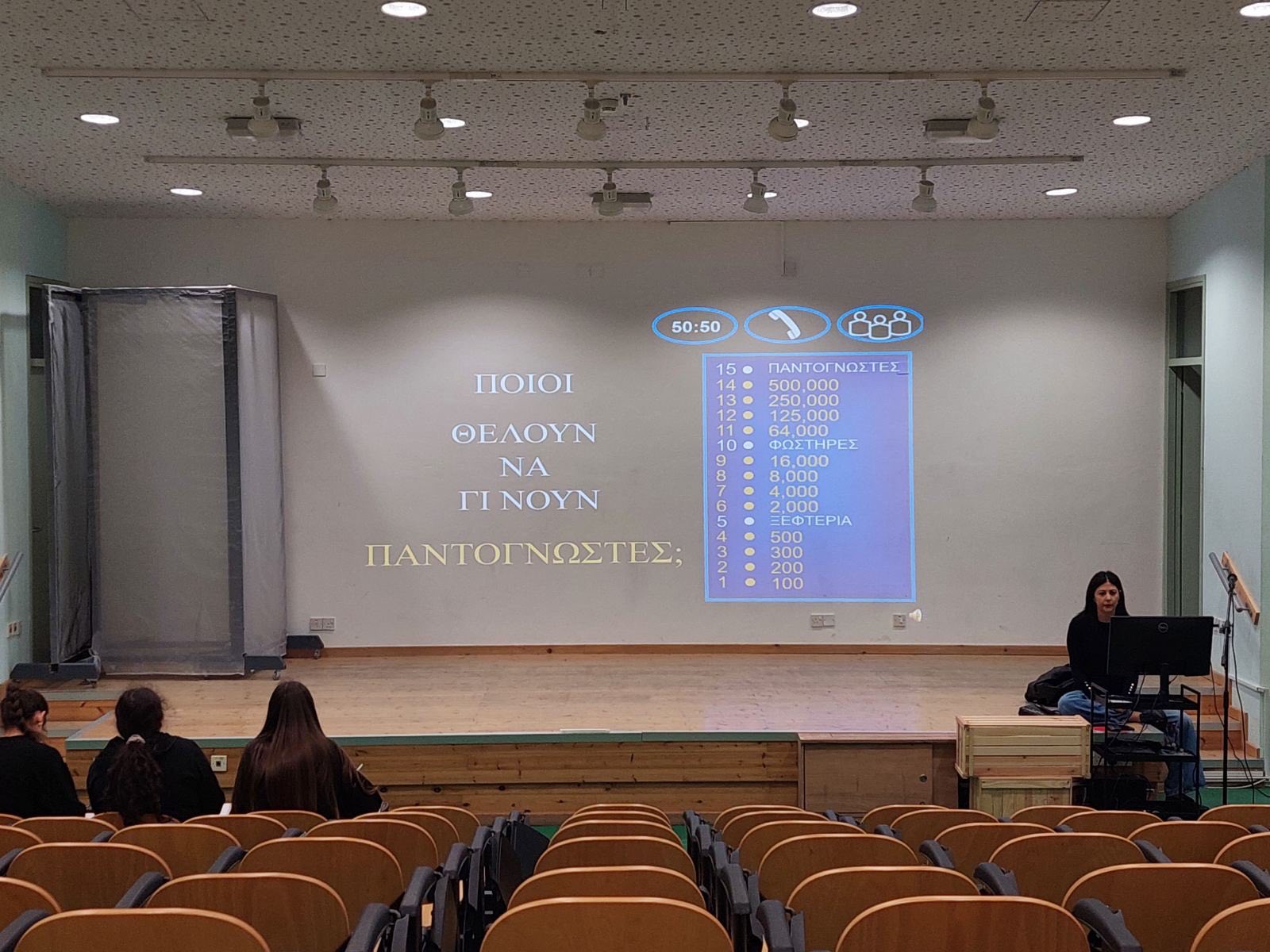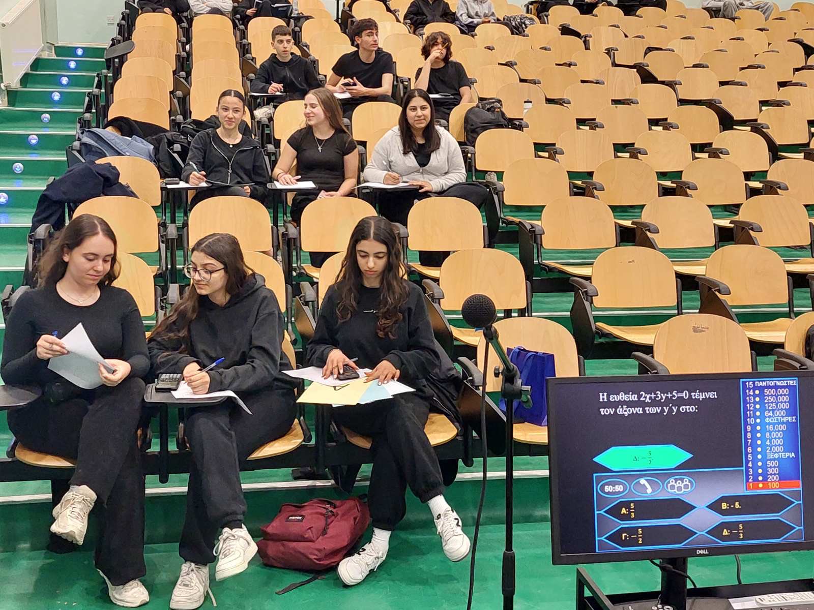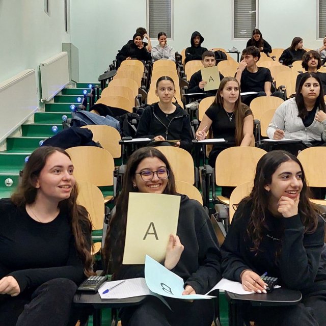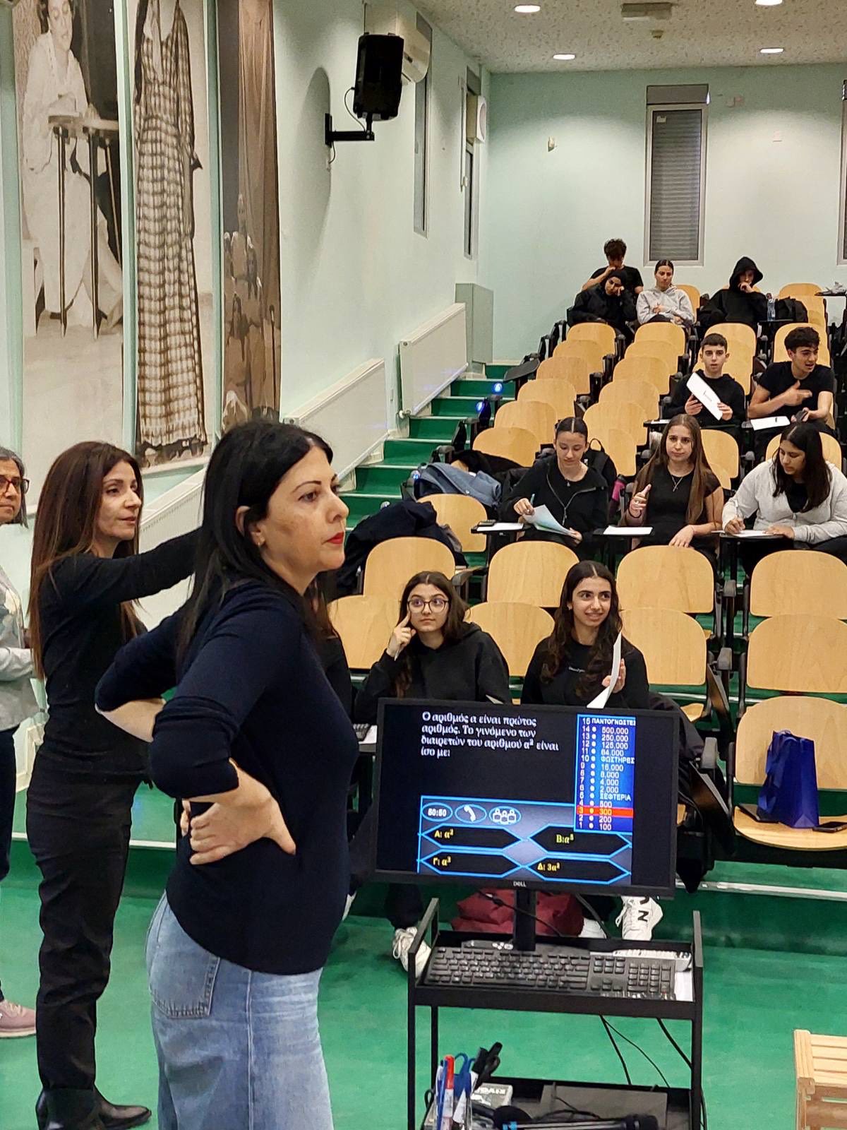 Οι δράσεις για τα Μαθηματικά και την ημέρα του «π» ολοκληρώθηκαν στο σχολείο μας την εβδομάδα που πέρασε. Την Πέμπτη, 12 Μαρτίου, μαθητές/τριες δοκιμάστηκαν στο παιχνίδι “Millionaire – Λύνοντας Μαθηματικές Ασκήσεις”. Νικήτρια αναδείχθηκε η Ομάδα 5 από το τμήμα Α21, που αποτελείται από τη Μαρία Γεωργίου, τη Μικαέλλα Παπαναστασίου, την Ολυμπιάδα Δημητρίου και τον Μάρκο Κωνσταντίνου. Στη δράση συμμετείχε και ο Επιθεωρητής Μαθηματικών του σχολείου μας, κ. Κυριάκος Κυριακού. Προηγήθηκαν τις προηγούμενες μέρες στην αυλή παιχνίδια λογικής, μαθηματικές προκλήσεις και ζωντανή συμμετοχή μαθητών και μαθητριών. Τον συντονισμό είχε ο Γιώργος Μυλωνάς, Β.Δ.