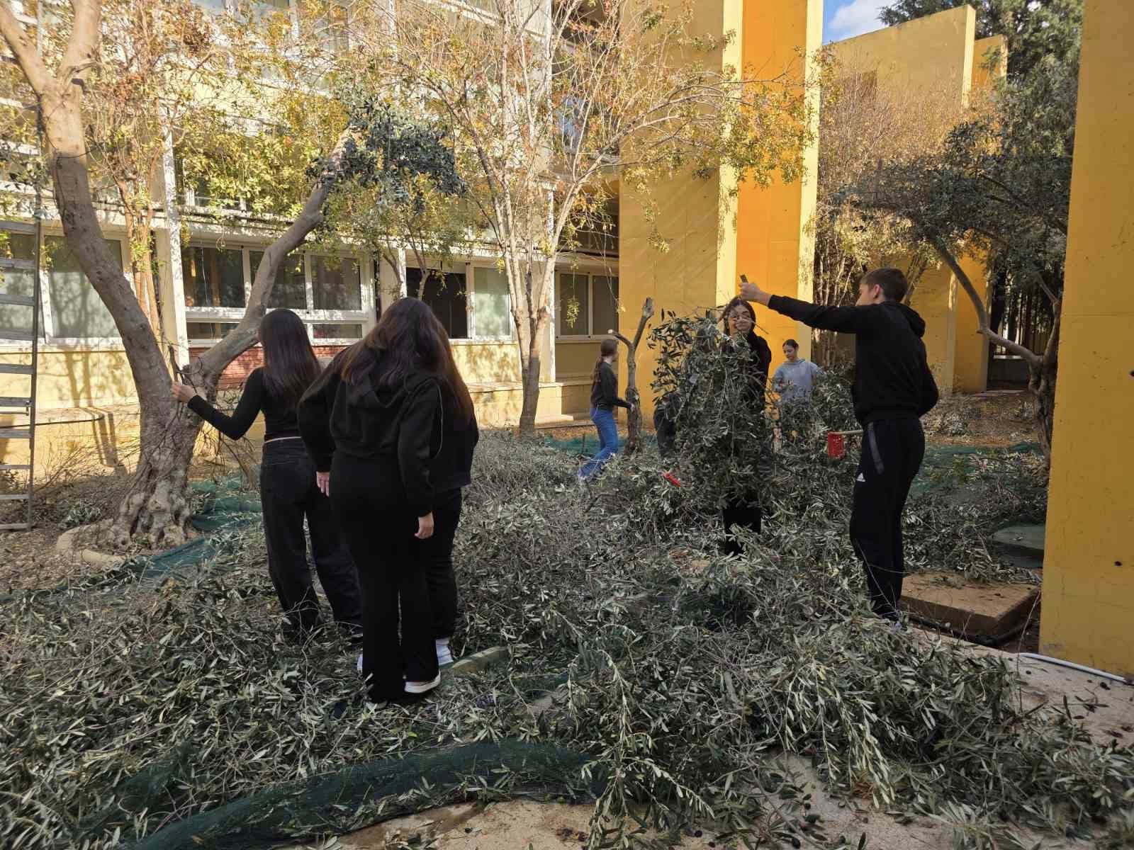 Από την Κυριακή, 23 μέχρι την Παρασκευή 28 Νοεμβρίου άρχισε και ολοκληρώθηκε η συγκομιδή των ελιών του σχολείου μας. Οι ελιές μεταφέρθηκαν στο ελαιοτριβείο και ήδη το Σχολείο μας παρέλαβε το λάδι. Ιδιαίτερα την Κυριακή, μια μεγάλη ομάδα μάζεψε ελιές, κλάδεψε, καθάρισε τους χώρους, κουβάλησε ξύλα, έπλυνε και έστρωσε τραπέζια, πύρωσε το παραδοσιακό φουρνάκι και έψησε οφτό. Πολύτιμη υπήρξε η βοήθεια του Συνδέσμου Γονέων και κυρίως του προέδρου κ. Γιάννου Χούτρη (μεταφορά της συγκομιδής στο ελαιοτριβείο), του προέδρου της Σχολικής Εφορείας Νίκου Μεγάλεμου, του Εφόρου Άντη Αποστόλου, εκπαιδευτικών, του προέδρου του ΚΜΣ, μαθητών, φίλων της Στέγης Καϊμακλίου «Αρχάγγελος Μιχαήλ» και του Κέντρου Αποκατάστασης Άνοιας. Την ευθύνη για τη συγκομιδή στη διάρκεια της εβδομάδας, είχαν οι εκπαιδευτικοί Φίλιππος Φιλίππου, Παύλος Λοϊζίδης και Νεόφυτος Νεοφύτου, Β.Δ. Σύντομα θα πραγματοποιηθεί η καθιερωμένη δράση με τις παραδοσιακές καπήρες, τη ρίγανη και τις ελιές.