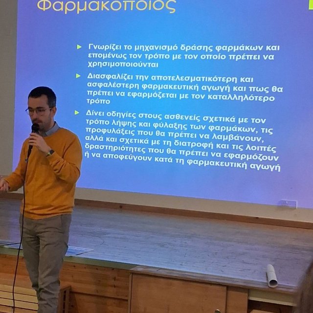 Γνωριμία με τα επαγγέλματα της Φαρμακευτικής και Νοσηλευτικής είχαν οι μαθητές/τριες την Τετάρτη, 18 Μαρτίου. Ο Δρ Γιώργος Παπαγιουβάνης μίλησε για τη Φαρμακευτική και η Μελίνα Ευριπίδου για τη Νοσηλευτική. Ακόμα ο Δρ Αλέξης Πολυκάρπους του Παν. Frederick University παρουσίασε στους μαθητές και στις μαθήτριες τον κόσμο της Μηχανικής και τα επαγγέλματα του Μηχανολόγου Μηχανικού, του Πολιτικού Μηχανικού και του Ηλεκτρολόγου Μηχανικού.