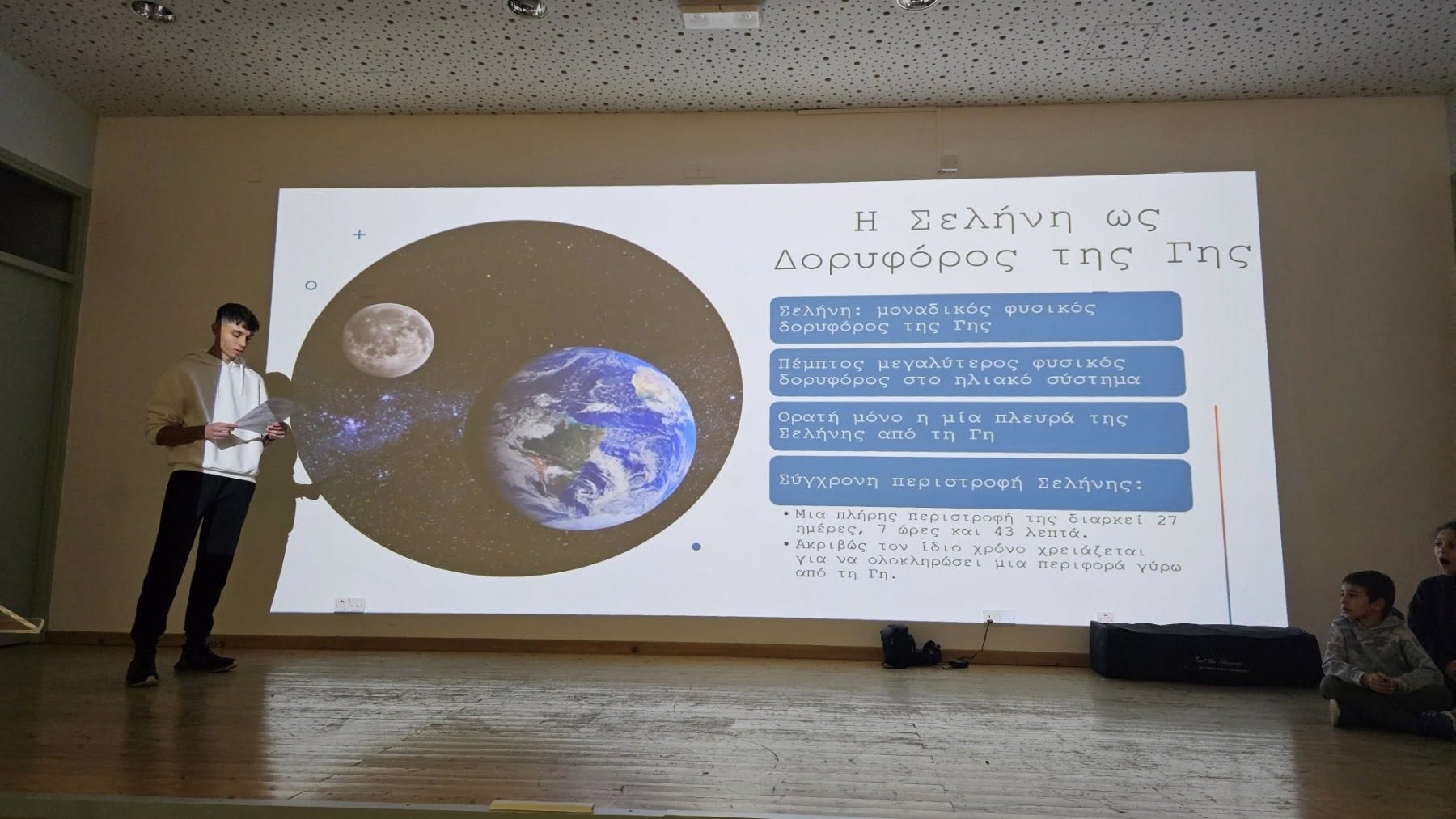 Αστρονομική Βραδιά πραγματοποιήθηκε στο Σχολείο μας τη Δευτέρα, 1 Δεκ. 2025 από τις 18:30-23:00. Η βραδιά διοργανώθηκε με αφορμή την Ημέρα Φυσικής, από τους Φυσικούς Θέμης Σβούκη, Έλενα Δημοσθένους, Νεόφυτο Νεοφύτου ΒΔ, και τον ΒΔ Πληροφορικής Αντώνη Πατσαλίδη. Η εκδήλωση ξεκίνησε με το παιχνίδι Astronomy Millionaire, ανάμεσα σε μαθητές, γονείς και καθηγητές. Ακολούθησαν παρουσιάσεις των μαθητών για τη Σελήνη, τους πλανήτες και το ηλιακό σύστημα.