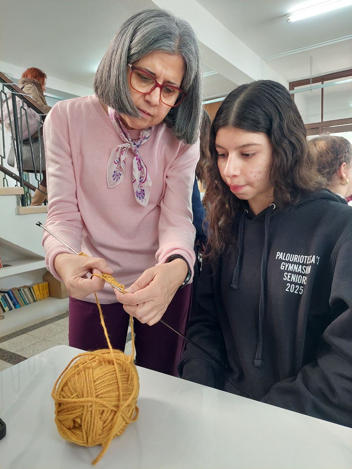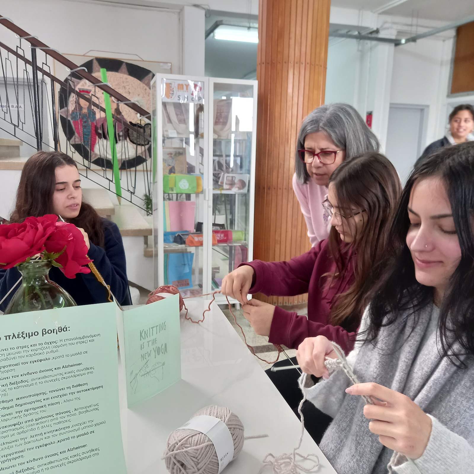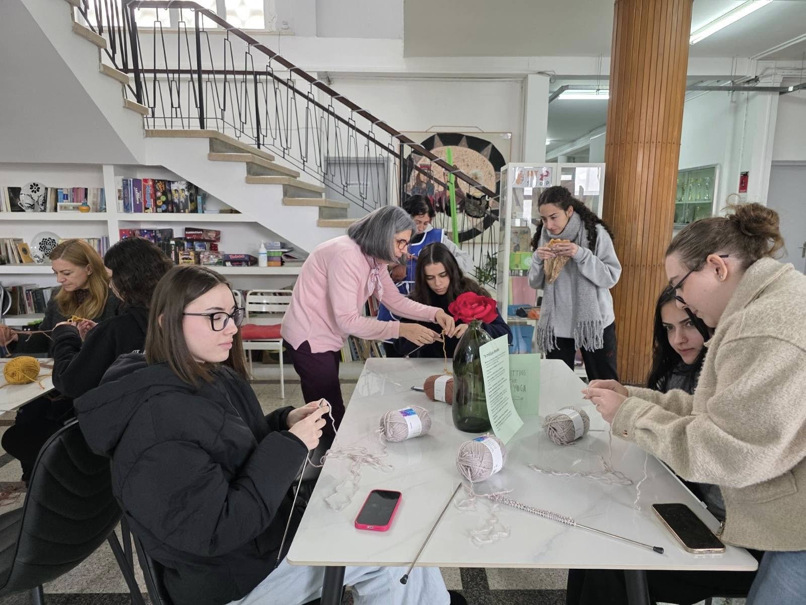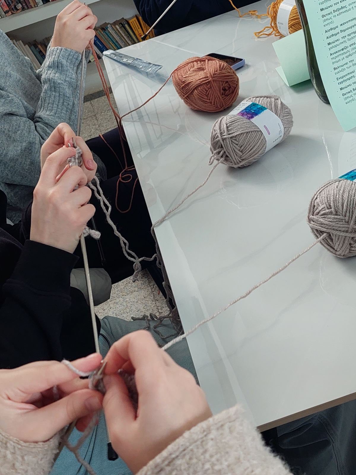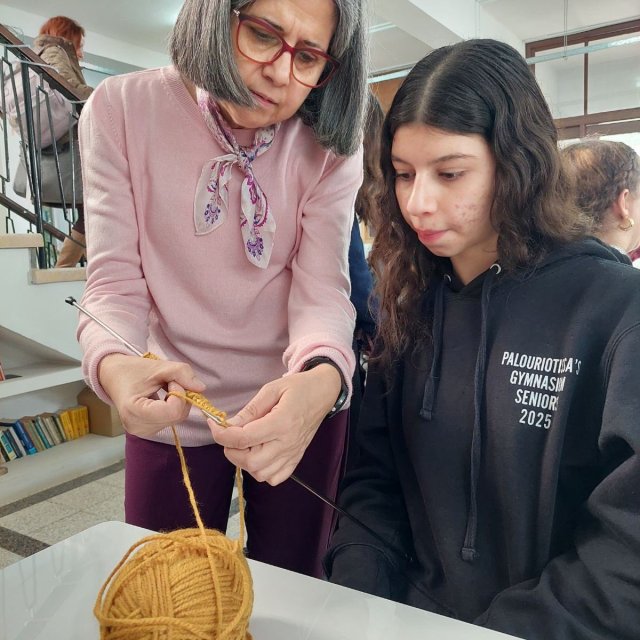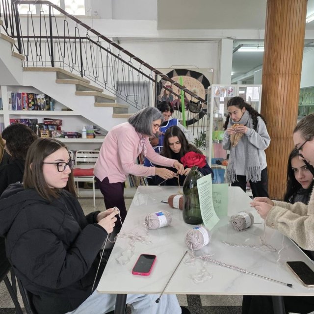 Άρχισε την περασμένη Τρίτη, 27 Ιανουαρίου, το δεύτερο διάλειμμα, μια νέα δραστηριότητα στο σχολείο μας, το πλέξιμο με βελόνες και μαλλιά. Ο στόχος είναι η ηρεμία και η καταπολέμηση του άγχους μέσα από μια δημιουργική δραστηριότητα. Τη δράση διοργάνωσαν οι καθηγήτριες Κυπρούλα Καραολιά, Β.Δ. Α΄, η Ειρήνη Δημητρίου και η Κρίστα Αγρότου. Κάθε Τρίτη, το β΄ διάλειμμα.