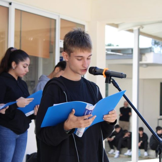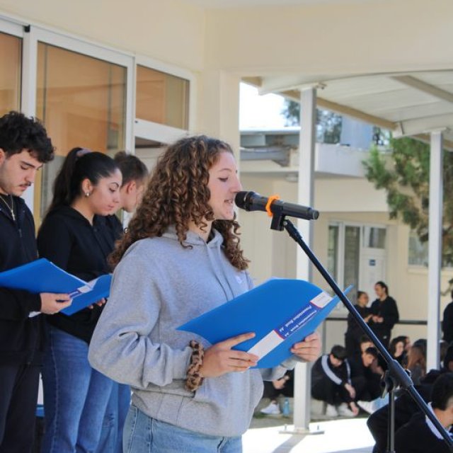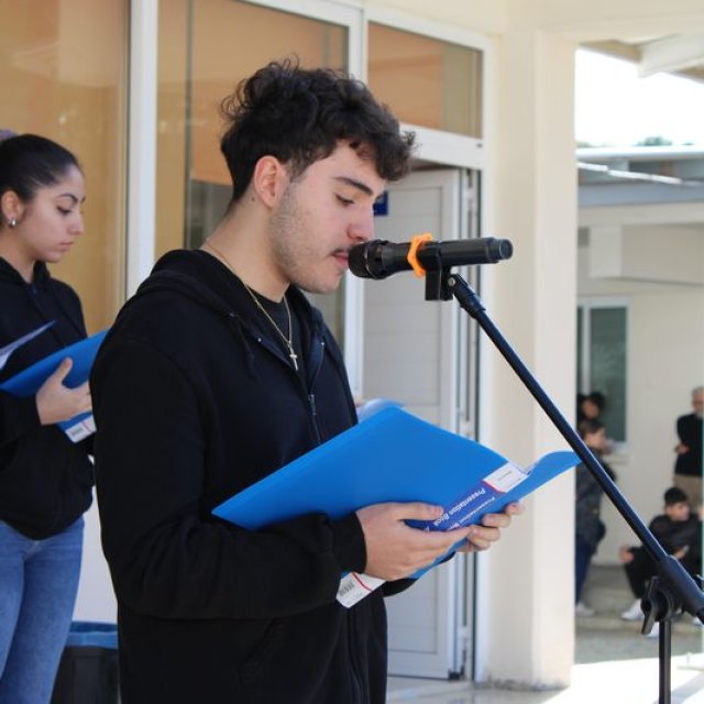 Την Παρασκευή, 15 Νοεμβρίου 2024, πραγματοποιήσαμε στον χώρο της εσωτερικής αυλής του Σχολείου μας, εκδήλωση διαμαρτυρίας και καταδίκης της επετείου ανακήρυξης του παράνομου ψευδοκράτους. Η επέτειος αυτή, μας καλεί να θυμηθούμε με πικρία και αγανάκτηση ότι πριν από 41 ακριβώς χρόνια σαν σήμερα, ένα ακόμη στυγερό έγκλημα διαπράχθηκε εναντίον της πατρίδας μας. Ο Τούρκος κατακτητής, 9 χρόνια μετά τη βάρβαρη εισβολή του στο νησί το μαύρο Ιούλιο του 1974, προχώρησε ακόμη ένα βήμα πιο κάτω: Ανακήρυξε το κομμάτι της πατρίδας μας, που παράνομα άρπαξε από τους νόμιμους ιδιοκτήτες του, σε δήθεν ανεξάρτητο κράτος με την ονομασία Τουρκική Δημοκρατία της Βόρειας Κύπρου (ΤΔΒΚ), το γνωστό και ορθά αποκαλούμενο απ’ όλους μας ψευδοκράτος. Το παράνομο αυτό καθεστώς, που επιχείρησε και επιχειρεί να νομιμοποιήσει η Τουρκία, καταδικάστηκε από το Συμβούλιο Ασφαλείας των Ηνωμένων Εθνών και χαρακτηρίστηκε ως νομικά άκυρο (non valid).
