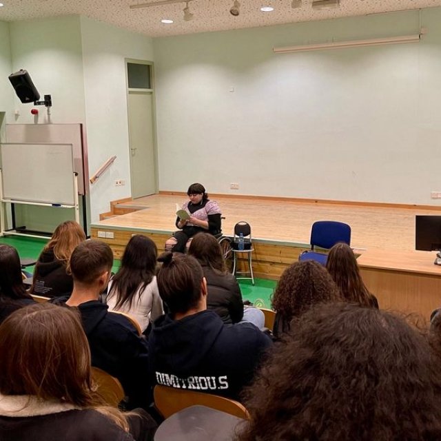 Την Τετάρτη 18/12/2024 η Ροζ παρουσίασε την ποιητική της συλλογή «Ποίηση στους δρόμους» σε μαθήτριες και μαθητές του σχολείου μας. Η εκδήλωση οργανώθηκε από το book club του Λυκείου Παλουριώτισσας. Η Ροζ σπούδασε κοινωνική ανθρωπολογία στην Αθήνα. Αγαπά να γράφει και το 2023 εξέδωσε την πρώτη της ποιητική συλλογή με τίτλο "Ποίηση στους δρόμους". Έλαβε μέρος στο φεστιβάλ Beyond DisDance, που ασχολείται με τη συμπερίληψη και την προσβασιμότητα στις τέχνες. Συμμετείχε σε ακτιβιστικές ομάδες. Αγαπά τη μυρωθκιά του γιασεμιού τζαι να βλέπει τη θάλασσα.