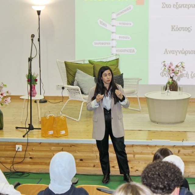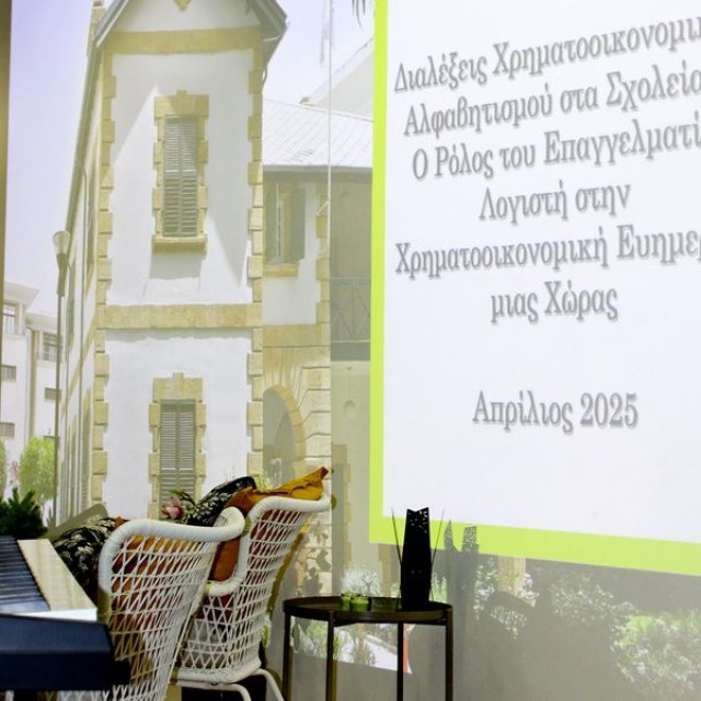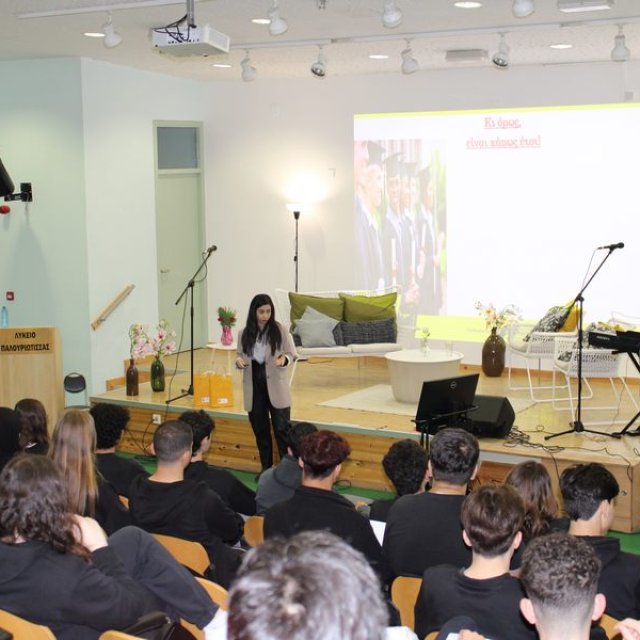 Την Παρασκευή, 5 Απριλίου 2025, πραγματοποιήθηκε παρουσίαση σε τμήματα του Οικονομικού και Υπηρεσιών με θέμα: «Χρηματοοικονομικός αλφαβητισμός - Ευκαιρίες, προκλήσεις και κίνδυνοι στο ψηφιακό χρηματοοικονομικό περιβάλλον» από τις κυρίες Αγγελίνα Γεωργίου και Κωνσταντίνα Αχιλλέως του συνδέσμου CFA Society Cyprus. Στο τέλος της παρουσίασης οι μαθητές/τριες είχαν την ευκαιρία να θέσουν σειρά ερωτημάτων προς τις ομιλήτριες. Η συζήτηση ήταν εποικοδομητική και οι μαθητές/τριες πήραν χρήσιμες πληροφορίες όσον αφορά τις θέσεις εργασίας, το επάγγελμα του λογιστή και του ελεγκτή στην Κύπρο, την πορεία της κυπριακής οικονομίας, καθώς και προβλέψεις για το μέλλον.