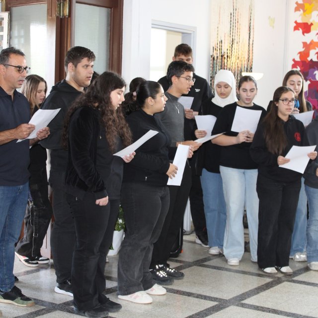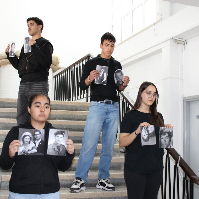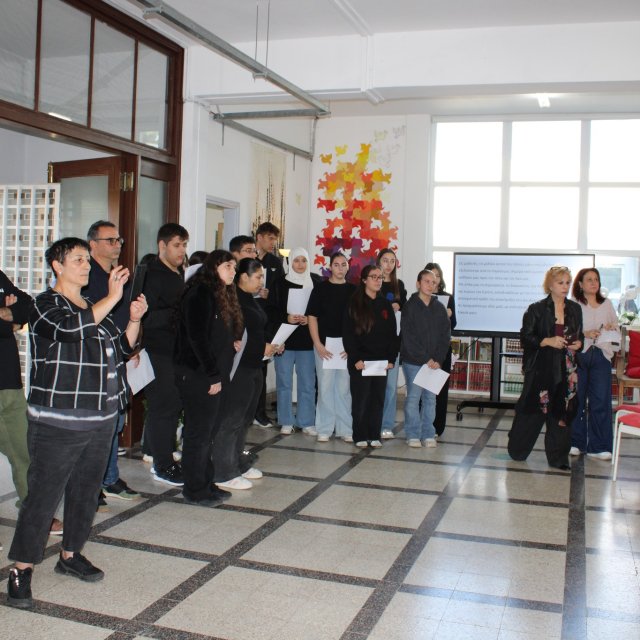 Eκδήλωση καταδίκης του ψευδοκράτους πραγματοποιήθηκε στο φουαγέ του σχολείου μας την Παρασκευή, 14 Νοεμβρίου 2025. Λίγο πριν αναχωρήσουν για την αντικατοχική εκδήλωση που διοργάνωσε η ΠΣΕΜ, τα μέλη του Κ.Μ.Σ., οι μαθητές και μαθήτριές μας, καταδίκασαν την ανακήρυξη του ψευδοκράτους με ποιητικά κείμενα, συνθήματα, μουσική και μαρτυρίες για τους αγνοούμενους του 1974. Στον χώρο της εκδήλωσης λειτούργησε πινακίδα-εγκατάσταση με φωτογραφίες και κεριά.