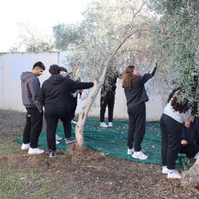 Μάζεμα ελιών στην αυλή του σχολείου