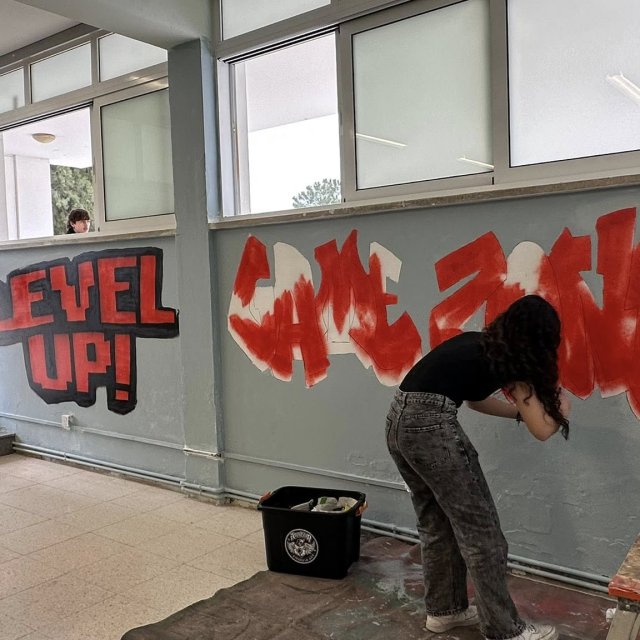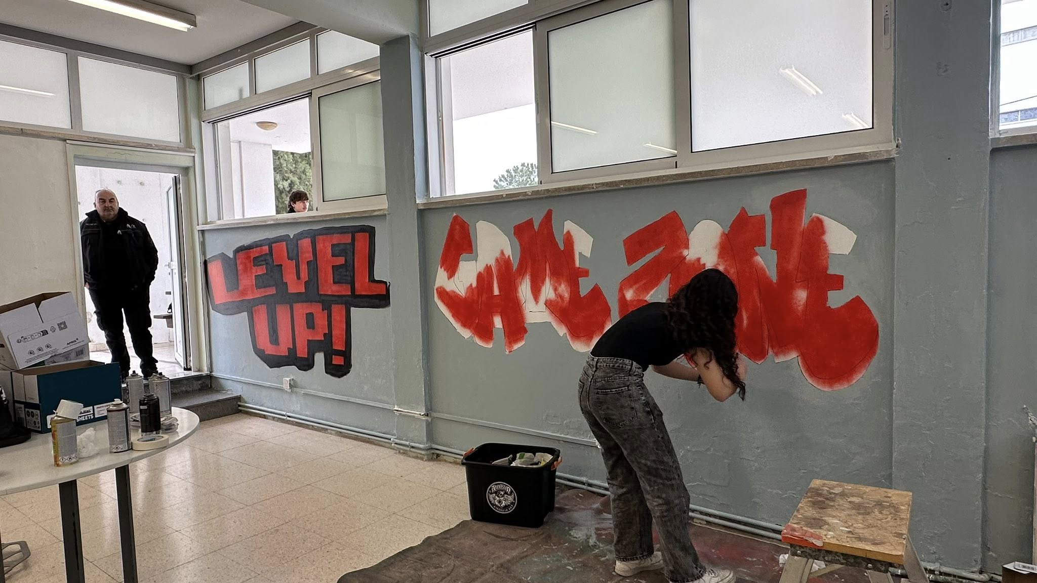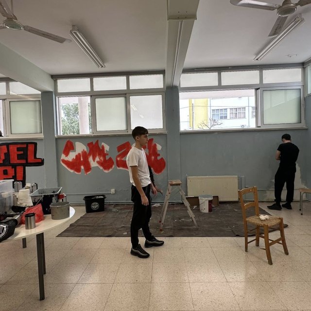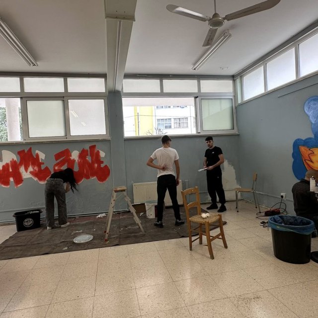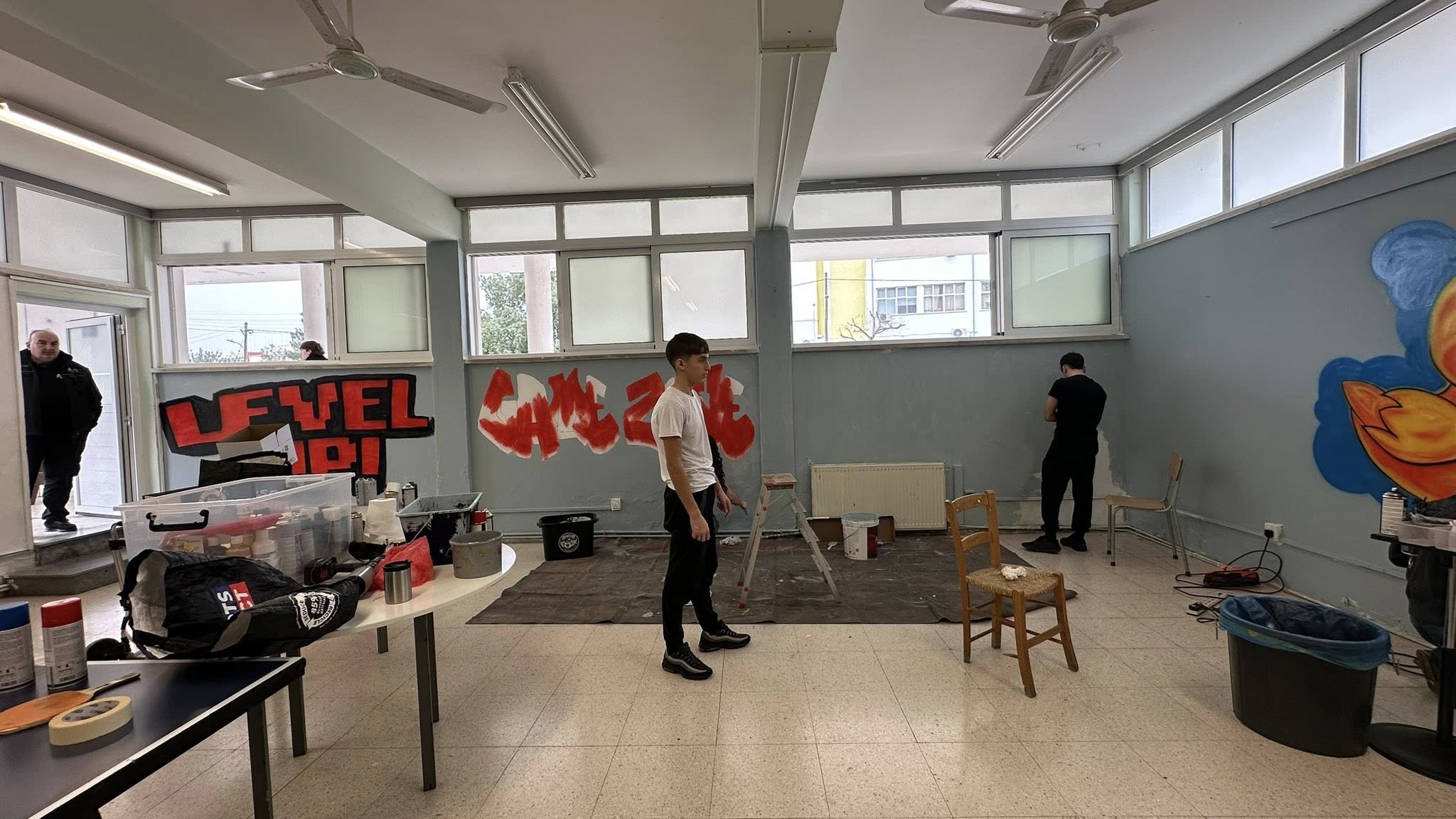 Μαθητές/τριες του Α42 με τον καθηγητή Τεχνολογίας Σάββα Κουρέα ζωγράφισαν την Παρασκευή, 13 Φεβρουαρίου, τους τοίχους της Αίθουσας Ψυχαγωγίας. Ο Σάββας Κουρέας είναι γνωστός τοιχογραφίστας και οι μαθητές/τριες του Α42 Χρήστος Κορελίδης, Σάββα Ελευθέριος, Χρυσήλιου Σταυριάν, Τζιανοκκάρο Αμάντα ζήτησαν τη βοήθειά του.