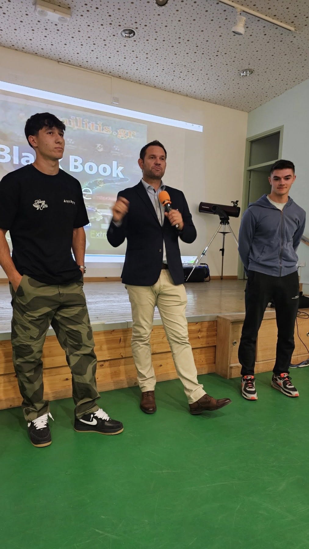 Την περασμένη Δευτέρα, 1η Δεκ. 2025, πραγματοποιήθηκε στο Σχολείο μας εκδήλωση ενάντια στη βία και τον ρατσισμό. Στους μαθητές και τις μαθήτριές μας μίλησε ο πρόεδρος του Συνδέσμου Ποδοσφαιριστών Κύπρου, Σπύρος Νεοφυτίδης, οι ποδοσφαιριστές Παναγιώτης Κατιρτζιής (ΑΠΟΕΛ) και Παναγιώτης Ανδρέου (Ομόνοια) και ο Ευριπίδης Φράγκος, ο οποίος μοιράστηκε τη συγκλονιστική εμπειρία του ως θύμα οπαδικής βίας. Τα παιδιά ευαισθητοποιήθηκαν ιδιαίτερα από τη μαρτυρία του Ευριπίδη Φράγκου, ο οποίος λίγο έλειψε να χάσει τη ζωή του από χούλιγκαν έξω από το στάδιο Αντώνης Παπαδόπουλος. Η παρουσίαση οργανώθηκε από την καθηγήτρια Αγγλικών Μισιελίνα Σταυρινού.